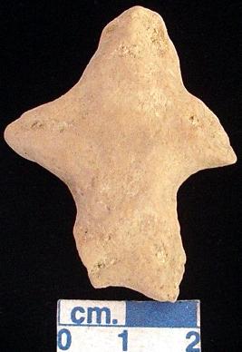 | Description / विवरण | A terracotta archaic human figurine, red, pin hole eyes, pinched nose, slit mouth, short out stretched arms with one incised line but the left one is partly broken, both short legs are broken, treated with red wash, handmade. |