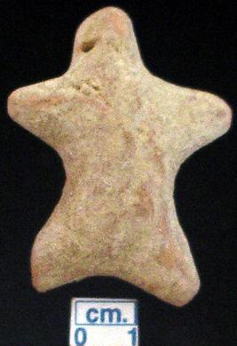 | Description / विवरण | An archaic terracotta human figurine with round head, red, pinched nose, pin hole eyes, slit mouth, short out stretched arms, shrot wide bridged stumpy legs, treated with red wash, handmade. |