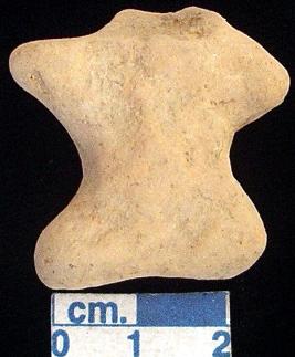 | Description / विवरण | A terracotta archaic human figurine with broken head, red, short out stretched arms, short wide bridged stumpy legs, treated with red wash, handmade. |