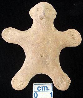 | Description / विवरण | A terracotta archaic human figurine with round head, dull red pinched nose, slit mouth, pin hole eyes, pinched ear, short out stretched arms with four incised lines on aech, punched navel, short wide bridged stumpy legs with four incised lines on each, treated with red wash, handmade. |