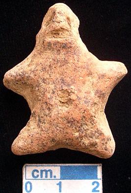 | Description / विवरण | An small archaic human terracotta figurine, red, pinched nose, slit open mouth, short out stretched arms, short wide bridged stumpy legs, punched eyes, punched navel, handmade. |