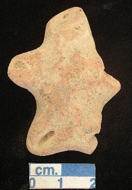 | Description / विवरण | A star shape archaic human terracotta figurine, red, small pinched nose, open slit mouth, pin hole eyes, short out stretched arms with one incised line but the left one is broken, traces of navel, short wide bridged stumpy legs with one incised line but the left one is broken, treated with red wash, handmade. |