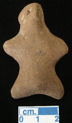 | Description / विवरण | An archaic human terracotta male figurine with round head , red, punched eyes, pinched nose and mouth, short out stretched arms, short wide bridged stumpy legs, blackish due to over firing, handmade. |