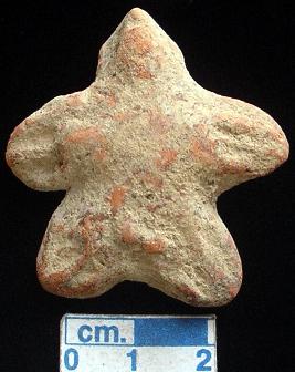 | Description / विवरण | An archaic human terracotta figurine, red, pinched, slit mouth, pinched nose, short out stretched arms with one incised line in each, short wide bridged stumpy legs with one incised line in each, punched eyes, punched navel, handmade. |
