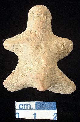 | Description / विवरण | A star shape archaic male terracotta figurine with round head, red, pin hole eyes, pinched nose, open slit mouth, short out stretched arms,punched navel, short wide bridged stumpy legs, phallus prominently indicated, treated with red wash, handmade. |