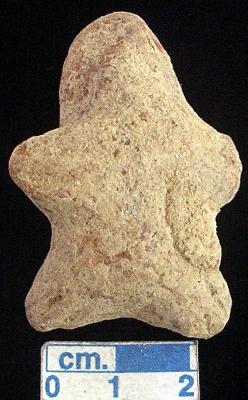 | Description / विवरण | A terracotta archaic human figurine with round head, red, pinched nose, open slit mouth, short out stretched arms with two incised lines but the left one is slightly broken, short bridged legs with two incised lines in each, treated with red slip, handmade. |