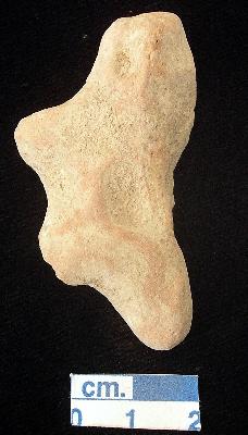 | Description / विवरण | A fragment of an archaic human terracotta figurine with broken head, red, small pinched nose, short out stretched arms but the left one is broken, big punched navel indicated, short wide bridged stumpy legs but the right one is broken, treated with red wash, handmade. |