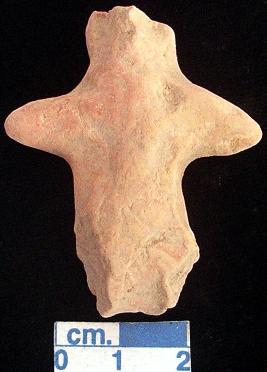 | Description / विवरण | A terracotta archaic human figurine with damaged head, red, pinched nose, short out stretched arms, both legs are broken, treated with red wash, handmade. |