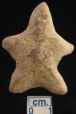 | Description / विवरण | A terracotta archaic human figurine with round head, red colour, pin hole eyes, pinched nose, slit mouth, short out stretched arms, short wide bridged stumpy legs, treated with red wash, handmade. |