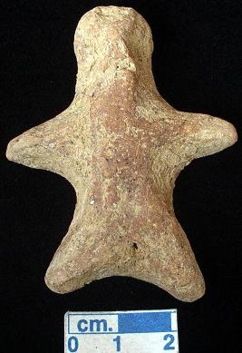 | Description / विवरण | A terracotta archaic male figurine with round head, dull red colour, pin hole eyes, pinched nose, slit open mouth, short wide out stretched arms, short wide bridged stumpy legs, anus indictaed, traces of red wash, handmade. |