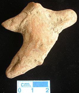 | Description / विवरण | A terracotta archaic human figurine with broken head, red, short out stretched arms with one incised line but the right one is partly broken, short bridged stumpy legs with one incised line but the left one is broken, handmade. |