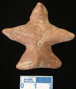 | Description / विवरण | An archaic male terracotta figurine, red, pinched nose, slit open mouth, short out stretched arms and legs, pinhole navel, phallus indicated, handmade. |