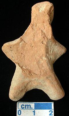 | Description / विवरण | A terracotta archaic human figurine with round and broken head, red colour, short out stretched arms, short wide bridged stumpy legs, treated with red wash, handmade. |