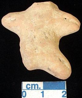 | Description / विवरण | A terracotta archaic human figurine with broken head, red, short out stretched arms with one incised line in each, short wide legs with one incised line but the right one is broken, treated with red wash, handmade. |