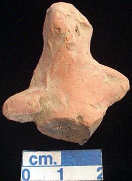| Description / विवरण | An archaic terracotta human figurine with round head tilted towards right, red, pinched nose, punched eyes, slit mouth, short out stretched arms with one incised line on the left one, punched navel, rest portion is broken, traeted with red wash, handmade. |