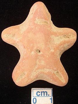 | Description / विवरण | A terracotta archaic human figurine, red, pin hole eyes, pinched nose, slit mouth, short out stretched arms with one incised line in each, punched navel, short wide bridged stumpy legs with one incised line in each, treated with red wash, handmade. |