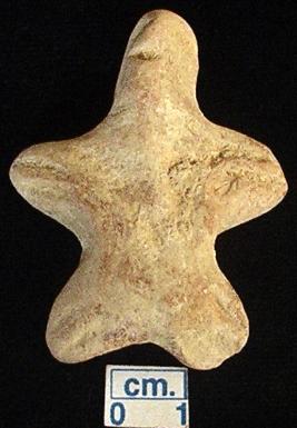 | Description / विवरण | A terracotta archaic human figurine, red colour, pin hole eyes, pinched nose, slit mouth, short out stretched arms with two incised line in each, punched navel, short wide bridged stumpy legs with two incised line in each, treated with red wash, handmade. |