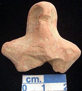 | Description / विवरण | An archaic terracotta human figurine with round head, pin hole eyes, pinched nose, open mouth, red, short out stretched arms, lower portion is broken, treated with red wash, handmade. |
