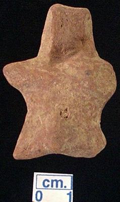 | Description / विवरण | A terracotta archaic male figurine with damaged head, red, short out stretched arms but the left one is damaged, pin hole navel, short wide bridged stumpy legs but the left one is slightly damaged, phallus indicated, treated with red wash, handmade. |