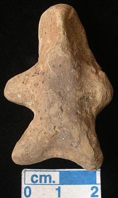 | Description / विवरण | A terracotta archic human figurine with round head, red, pinched nose, short out stretched uneven arm, pin hole navel, short bridged stumpy legs , devoid of any surface treatment, handmade. |