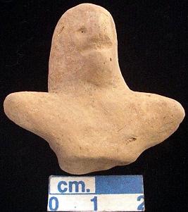 | Description / विवरण | A fragment of terracotta archaic human figurine with round head, dull red, pin hole eyes, pinched nose, slit mouth, short wide out out stretched arms, devoid of any surface treatment, handmade. |