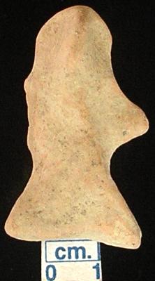 | Description / विवरण | An archaic terracotta human figurine, red, pinched nose, pin hole eyes, slit mouth, short out stretched arms and right one is damaged, punched navel, shrot wide bridged stumpy legs, treated with red wash, handmade. |