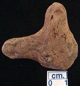 | Description / विवरण | A terracotta archaic human figurine with round head, red, pin hole eyes, pinched nose, slit mouth, short out stretched arms with three incised lines on right one but the left one is broken, lower portion is broken, treated with red wash, handmade. |