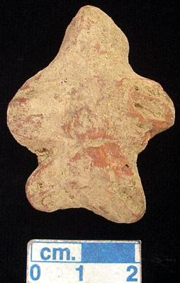 | Description / विवरण | A star shape archaic terracotta human figurine with round head, red, pinched nose, punched eyes, slit mouth, short out stretched arms with three incised lines on each, short wide bridged stumpy legs with two incised lines on each, treated with red wash, handmade. |