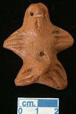 | Description / विवरण | An star shaped archaic male terracotta figurine with round head, red, pinched nose, short out stretched arms with three incised lines in each, legs with tthree incised lines each, punched navel, punched eyes, handmade. |