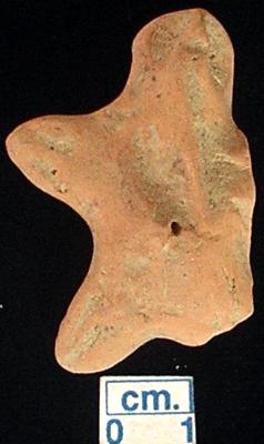 | Description / विवरण | An archaic terracotta human figurine, red, pinched nose, pin hole eyes, slit mouth, short out stretched arms with two incised line in each and some damaged, punched navel, shrot wide bridged stumpy leg with incised line and left one is daamged, treated with red wash, handmade. |