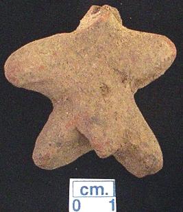 | Description / विवरण | A terracotta archaic male figurine, broken head, dull red colour, short out streached arms, short wide bridged stumpy legs, phallus indicated, treated with red wash, handmade. |