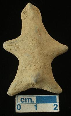 | Description / विवरण | A terracotta archaic human figurine with round head, pin hole eyes, pinched nose, short out stretched arms, short bridged stumpy legs, phallus indicated, well baked, handmade. |