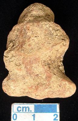 | Description / विवरण | An archaic terracotta male figurine with round head, red, pinched nose, punched eyes, slit mouth, both arms are damaged, short wide bridged stumpy legs, phallus indicated, treated with red wash, handmade. |