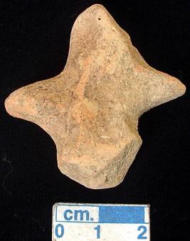 | Description / विवरण | An archaic human terracotta figurine, red, pinched nose, split mouth, short out stretched arms, legs are broken, punched eyes, punched navel, handmade. |