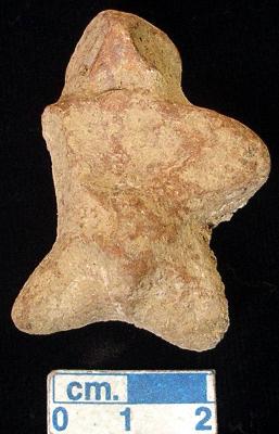 | Description / विवरण | An archaic male terracotta figurine, red, pinched nose, split mouth, short out stretched arms , shrot wide bridged stumpy legs, punched eyes, punched navel, phallus indicated, handmade. |