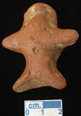 | Description / विवरण | A terracotta archaic human figurine with round head, punched eyes, pinched nose and slit open mouth, short out stretched stumpy arms, punched navel, short wide bridged stumpy legs and treated with red wash. |