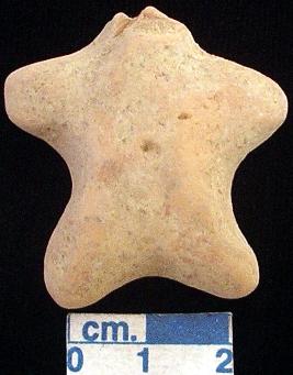 | Description / विवरण | A terracotta archaic human figurine with broken head, red, open mouth, short out stretched arms, pin hole navel, short wide bridged stumpy legs, treated with red wash, handmade. |