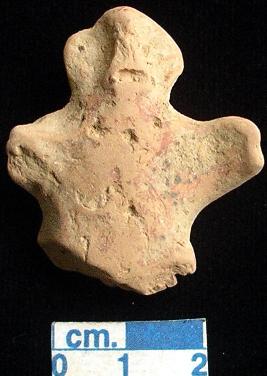 | Description / विवरण | A terracotta archaic human figurine, red, pin hole eyes, pinched ears, pinched nose, slit mouth, short out stretched arms, punched navel, lower part of body is broken, treated with red wash, handmade. |