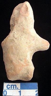 | Description / विवरण | An archaic human terracotta figurine, red, damaged head, damaged pinched nose, pin hole nose, short out stretched arms but right one is broken, broken legs, treated with red wash, handmade. |