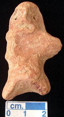 | Description / विवरण | An archaic human terracotta figurine, red, pinched nose, slit mouth, short out stretched arms where as right arm is broken, short wide bridged stumpy legs, punched eyes, punched navel, handmade. |