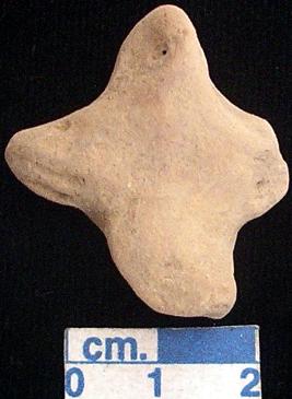| Description / विवरण | A terracotta archaic human figurine, red, pin hole eyes, pinched nose, short out stretched arms with three incised lines but the left one is broken, both short legs are broken, treated with red wash, handmade. |