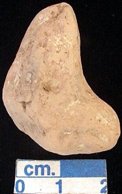 | Description / विवरण | An archaic human terracotta figurine, red, unidentified features, handmade. |
