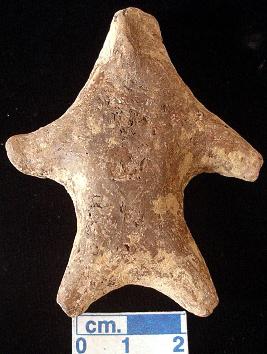 | Description / विवरण | A terracotta archaic human figurine with round head, dull red colour, pinched nose, short out stretched arms, short wide bridged stumpy legs, traces of red wash, handmade. |