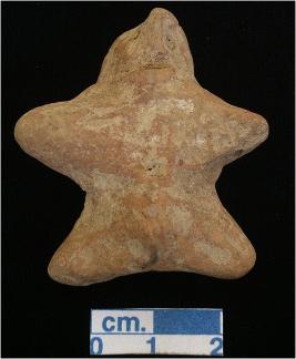 | Description / विवरण | An archaic male terracotta figurine, dullred, pinched nose, slit open mouth, short out stretched arms and legs , phallus indicated, handmade. |