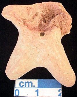 | Description / विवरण | A terracotta archaic human figurine, red, upper portion is damaged, pin hole navel, short wide bridged stumpy unevev legs, treated with red wash, handmade. |
