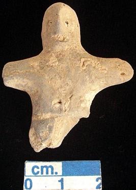 | Description / विवरण | An terracotta archaic human figurine with round head, grey, short out stretched arms with four incised lines on each but right one is slightly damaged, punched navel, one horizontal line on waist, both legs are broken, devoid of any surface treatment, handmade. |