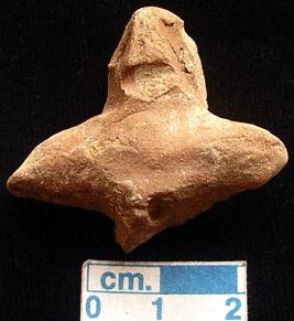 | Description / विवरण | An archaic human terracotta figurine, red, pinched nose, slit mouth, short out stretched arms, shrot wide bridged stumpy leg, punched eyes, punched navel, handmade. |