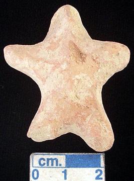 | Description / विवरण | A terracotta archaic human figurine with round head, red, pin hole eyes, pinched nose, slit mouth, short arms, short wide bridged stumpy legs, treated with red wash, handmade. |