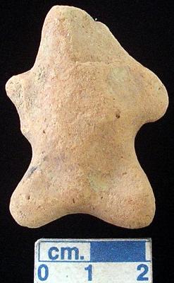 | Description / विवरण | A terracotta archaic human figurine with broken head, red colour, slit mouth, very short out stretched arms with one incised lines on each, short wide bridged stumpy legs with one incised lines on each, traces of red slip, handmade. |