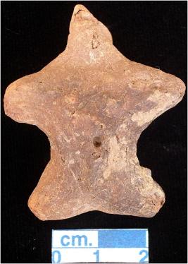 | Description / विवरण | An archaic male terracotta figurine, dull red, pin hole eyes, pinched nose, slit open mouth, short out stretched arms, pin hole navel, short bridged stumpy legs, phallus indicated, wash is being pealed off, handmade. |